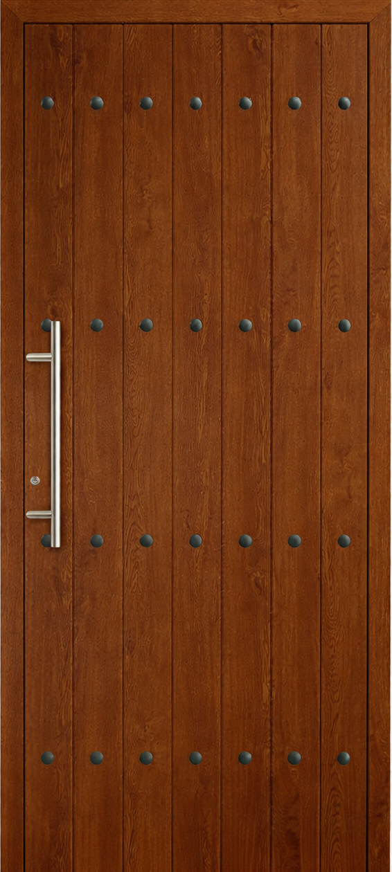 Ο σχεδιασμός με τις κατακόρυφες ξύλινες όψεις και τα διακοσμητικά μεταλλικά καρφιά παραπέμπει σε κλασικές και παραδοσιακές αρχιτεκτονικές γραμμές, καθιστώντας την INOX L231 ιδανική επιλογή για πέτρινες κατοικίες, εξοχικά ή χώρους που επιθυμούν αυθεντικό και στιβαρό ύφος.